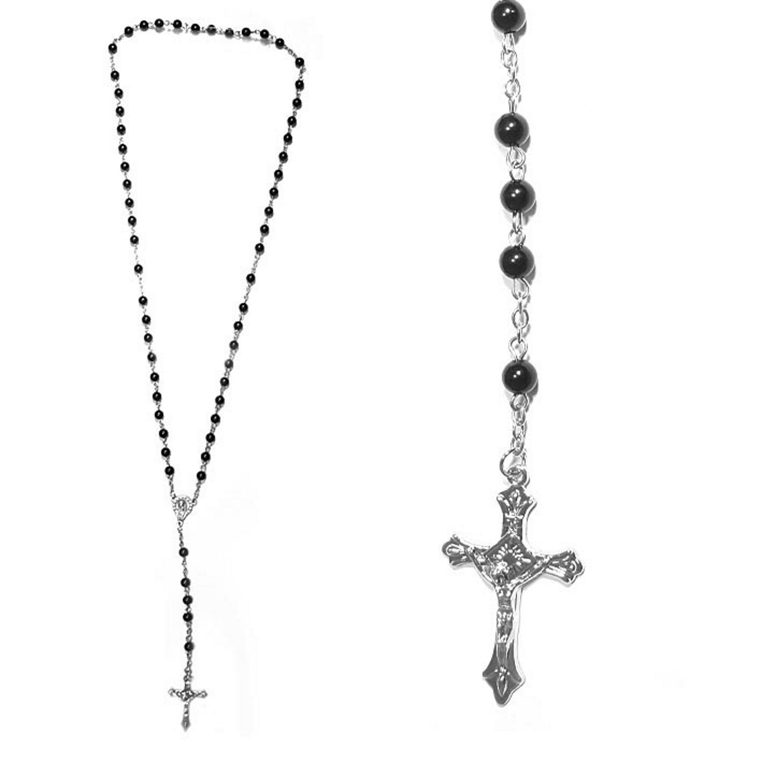 Collier sautoir fantaisie en métal argenté et plastique.<br/>Croix. Boule Chapelet Croix  Adulte Femme Homme Indémodable Mixte Religion Collier sautoir fantaisie en métal argenté et plastique.<br/>Croix. Boule Chapelet Croix  Adulte Femme Homme Indémodable Mixte Religion