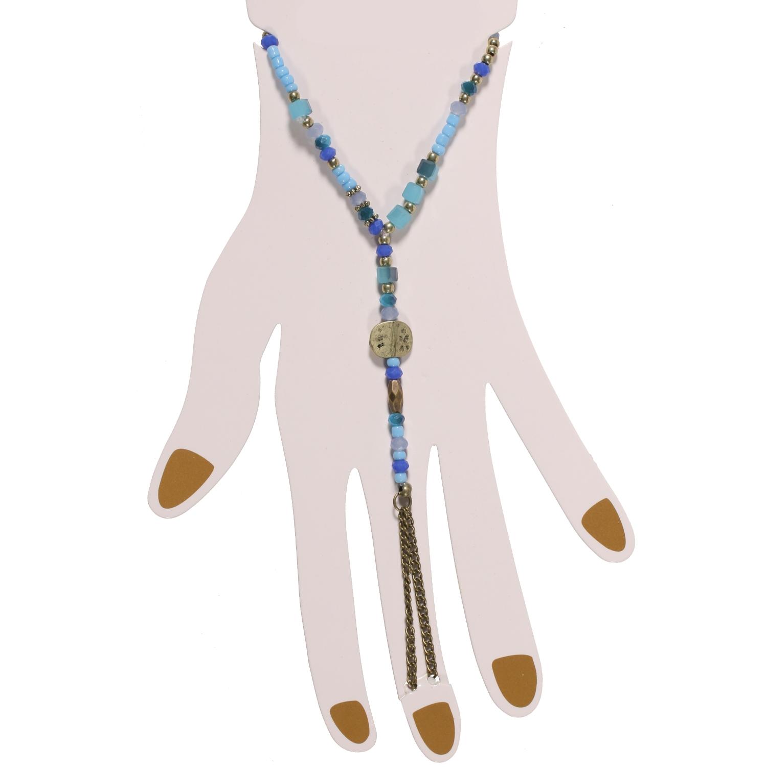 Bracelet bague fantaisie en métal doré vieilli et rocaille.