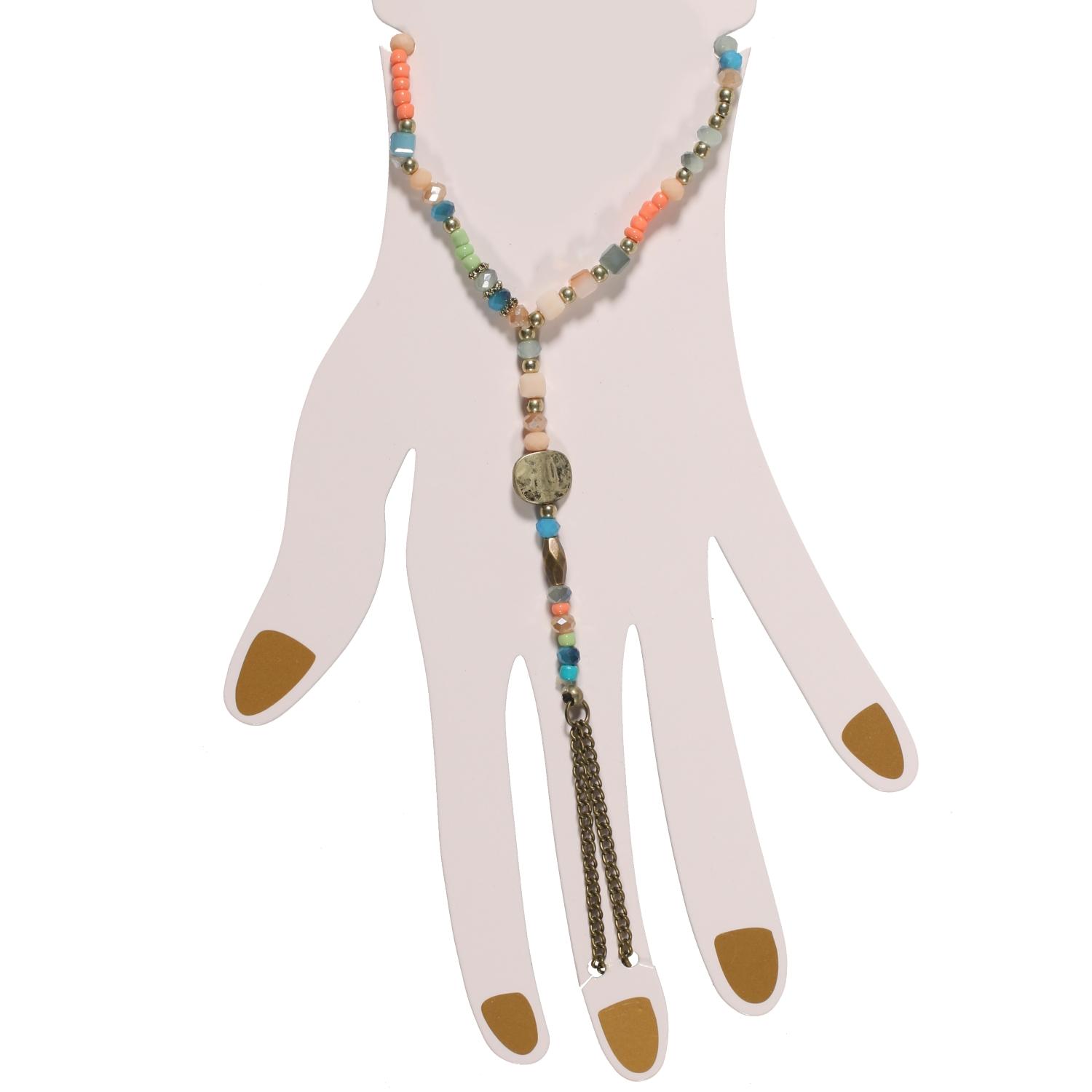 Bracelet bague fantaisie en métal doré vieilli et rocaille.