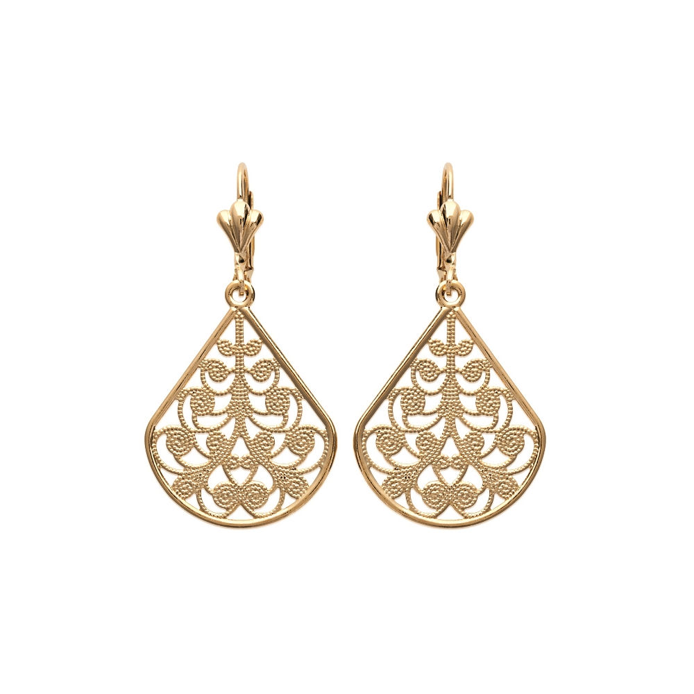 Description Boucles d'oreilles en plaqué or. Largeur 22 mm Hauteur 43 mm Matière(s) Plaqué or . Nos bijoux en plaqué or sont faits sur une base de laiton et recouverts d'or 18 carats à 3 microns sans dispersion. Cela signifie que nous garantissons 3 microns d'or sur n'importe quelle partie du bijou. Sur la plupart de nos bijoux empierrés, nous montons à 5 microns d'or 18 carats. Pour finir, nous faisons également une finition avec de l'or 24 carats afin de donner un plus bel éclat à nos bijoux. Fermoir Dormeuses Couleur(s) dominante(s) Doré Public Adulte . Genre Femme . Saison Indémodable . Cliquez sur une matière, un thème, une couleur ou une collection pour voir tous les articles associés.