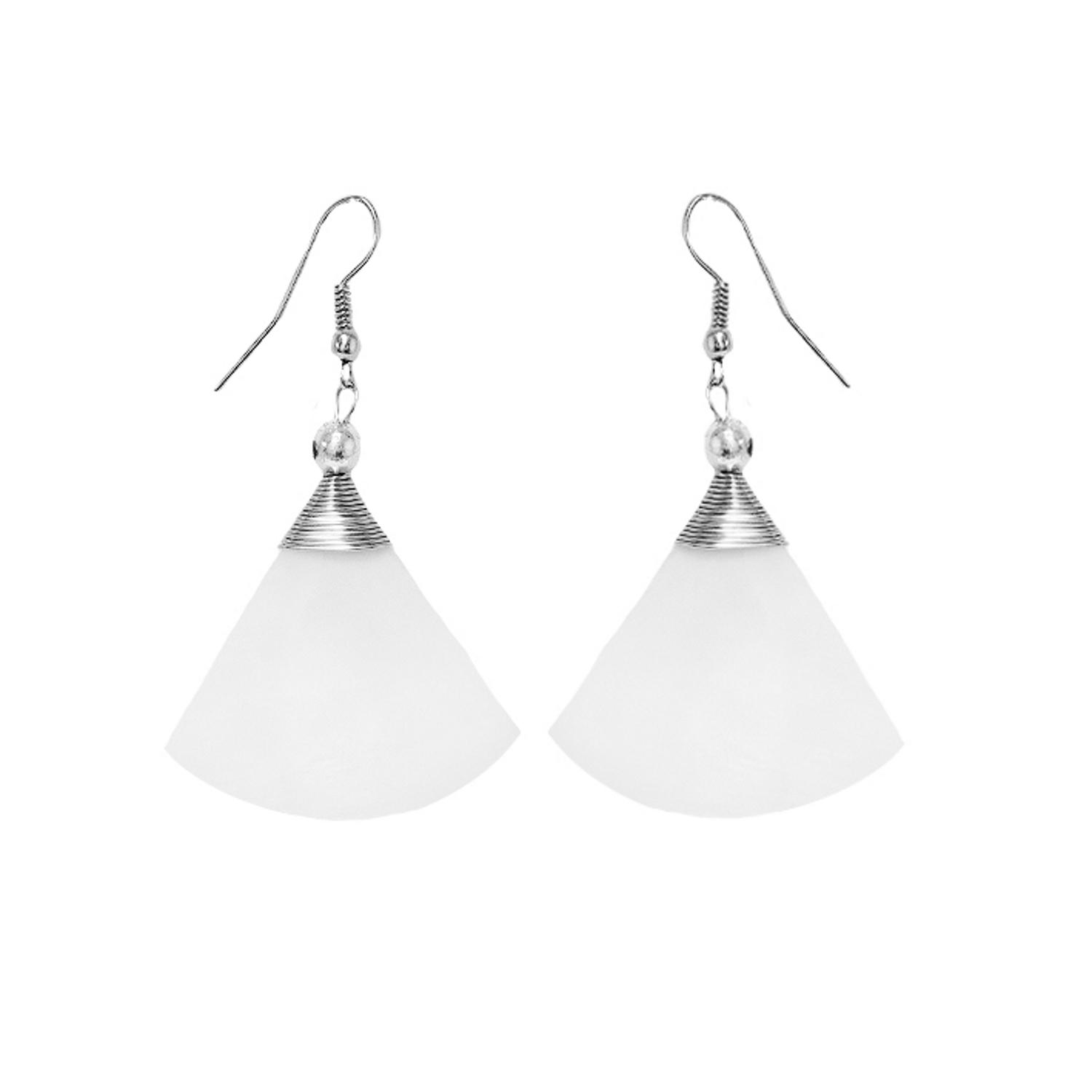 Boucles d'oreilles fantaisie en métal argenté et coquillage.