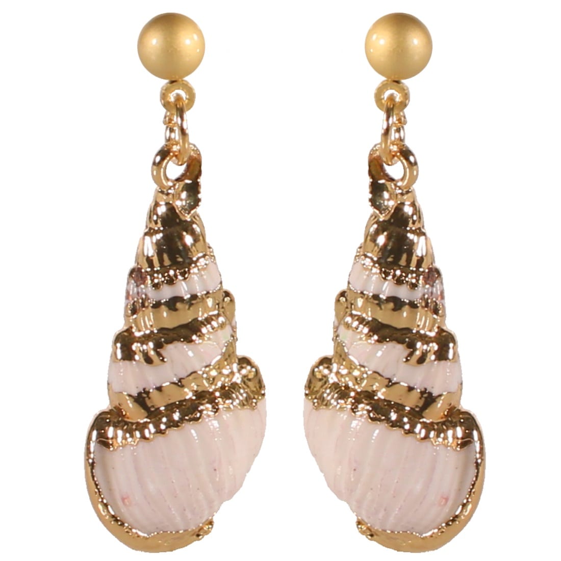 Description Boucles d'oreilles pendantes en métal doré et véritables coquillages avec dorure. Cliquez sur une matière, un thème, une couleur ou une collection pour voir tous les articles associés.