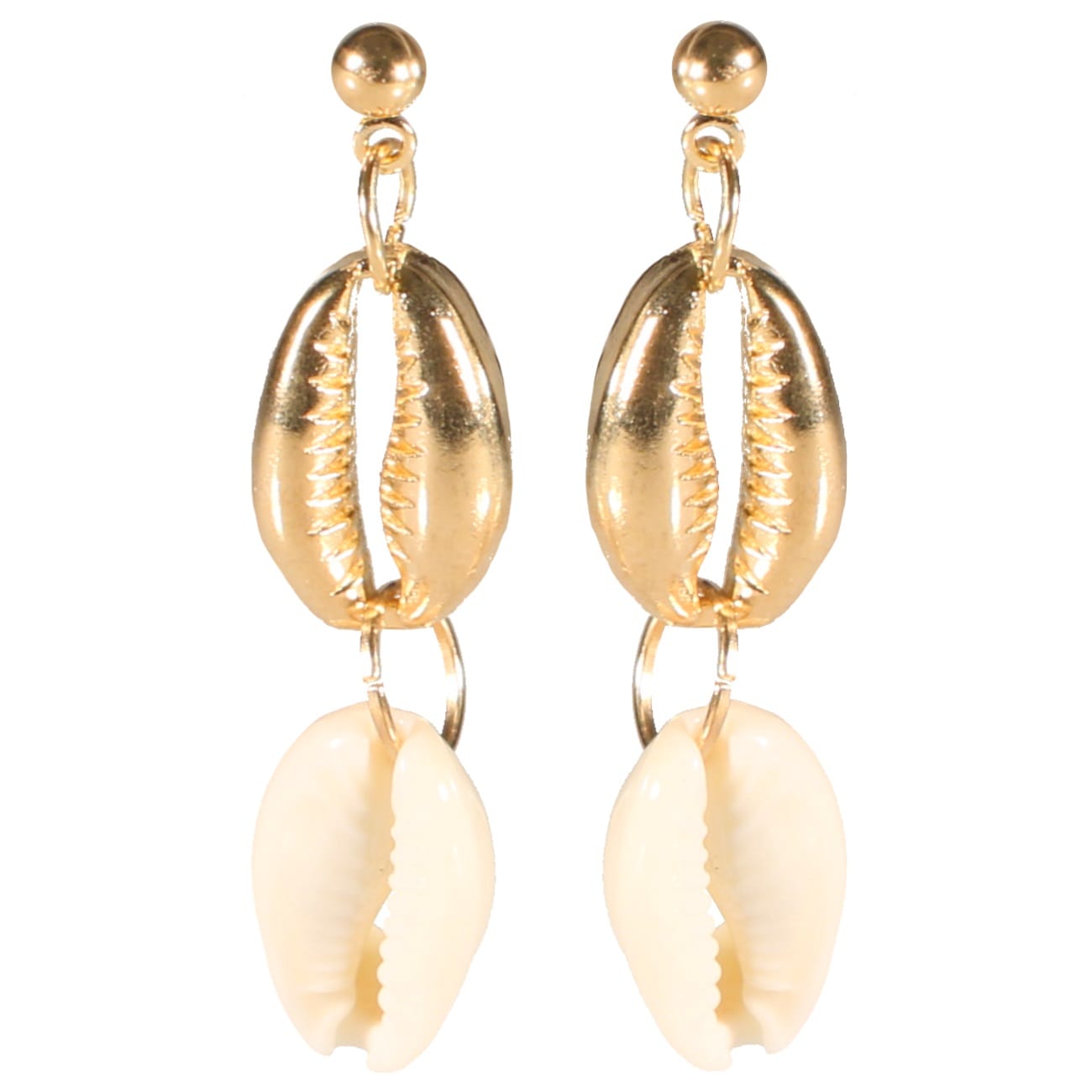 Description Boucles d'oreilles fantaisie pendantes coquillages cauris en métal doré et véritables coquillages cauris. Cliquez sur une matière, un thème, une couleur ou une collection pour voir tous les articles associés.