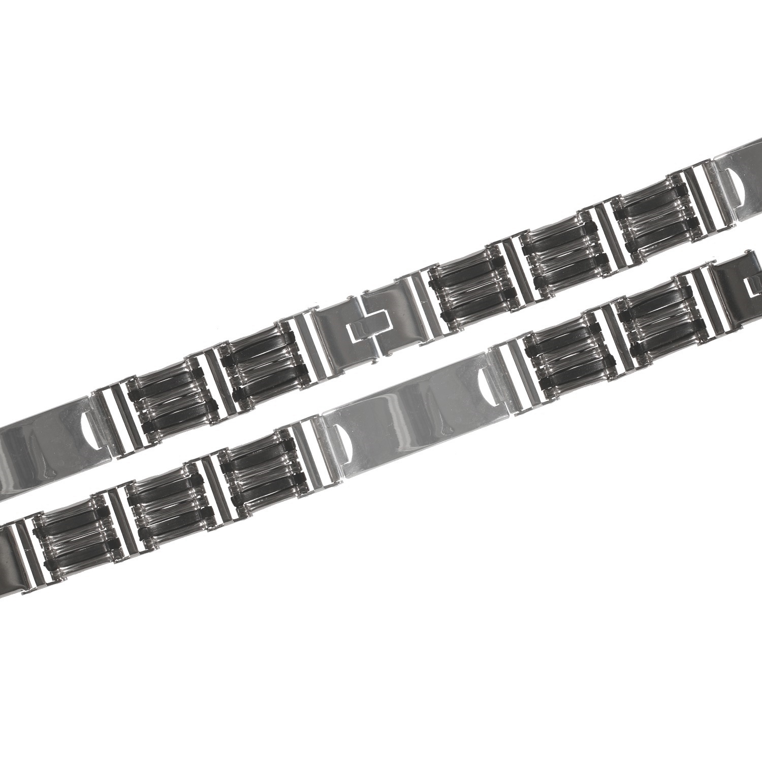 Bracelet gourmette identité pour homme en acier argenté et caoutchouc noir.