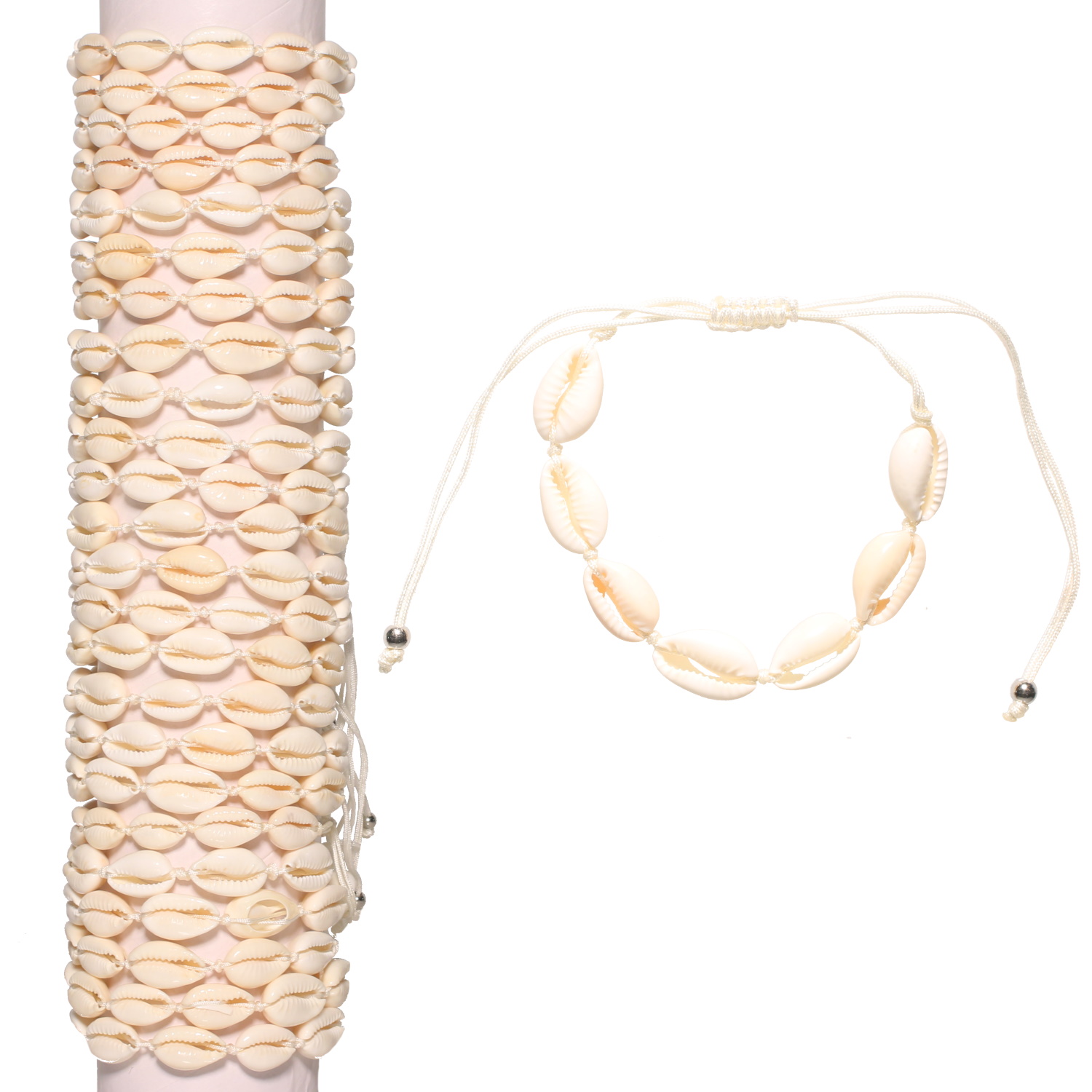 Description Bracelet fantaisie composé d'un cordon de couleur blanc et de coquillages cauris. Vendu à l'unité. Votre préférence en commentaire. Cliquez sur une matière, un thème, une couleur ou une collection pour voir tous les articles associés.