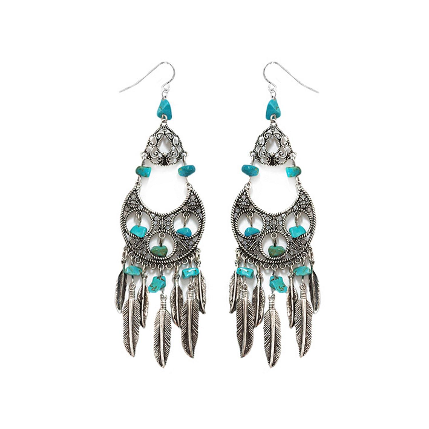 Boucles d'oreilles fantaisie en métal argenté vieilli et pierres naturelles.