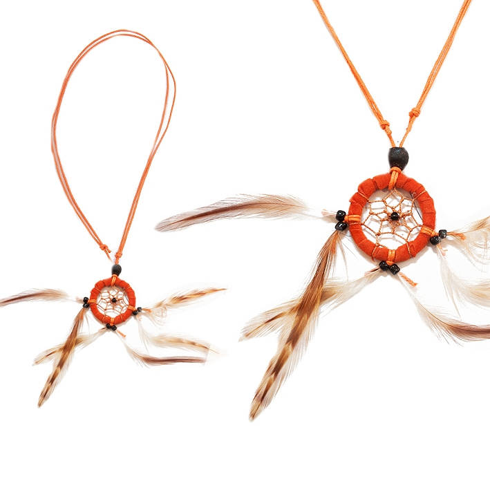 Collier fantaisie en textile et plumes.