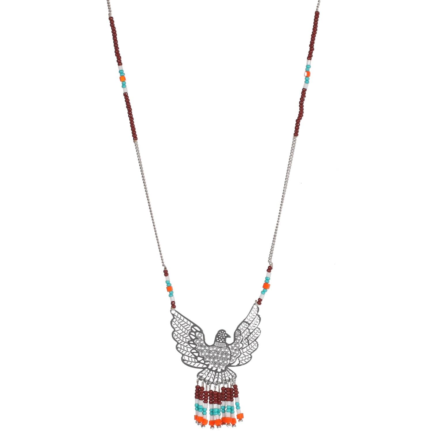 Collier fantaisie en métal argenté et rocaille.