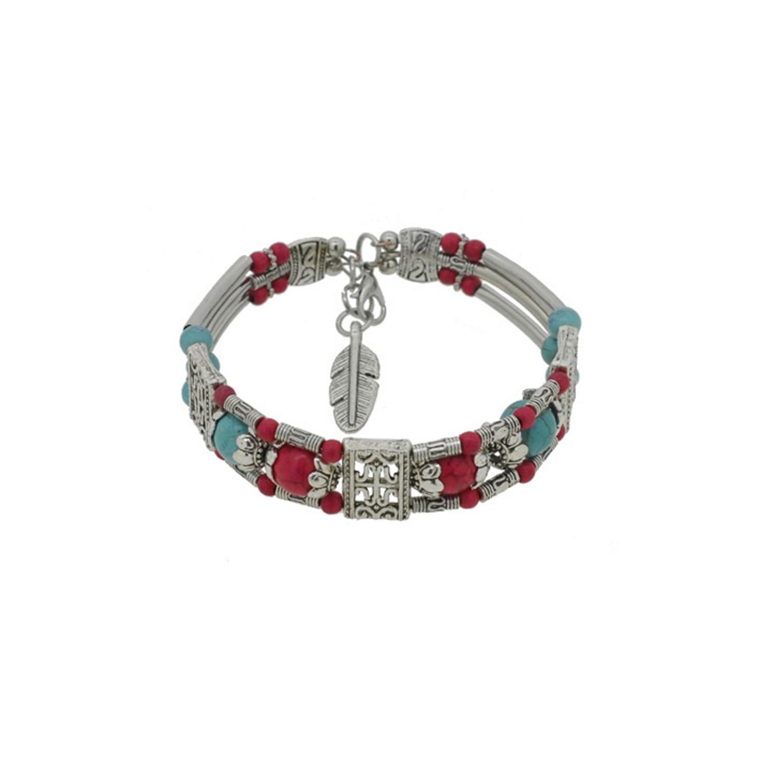 Bracelet fantaisie rigide en métal argenté vieilli et rocaille.