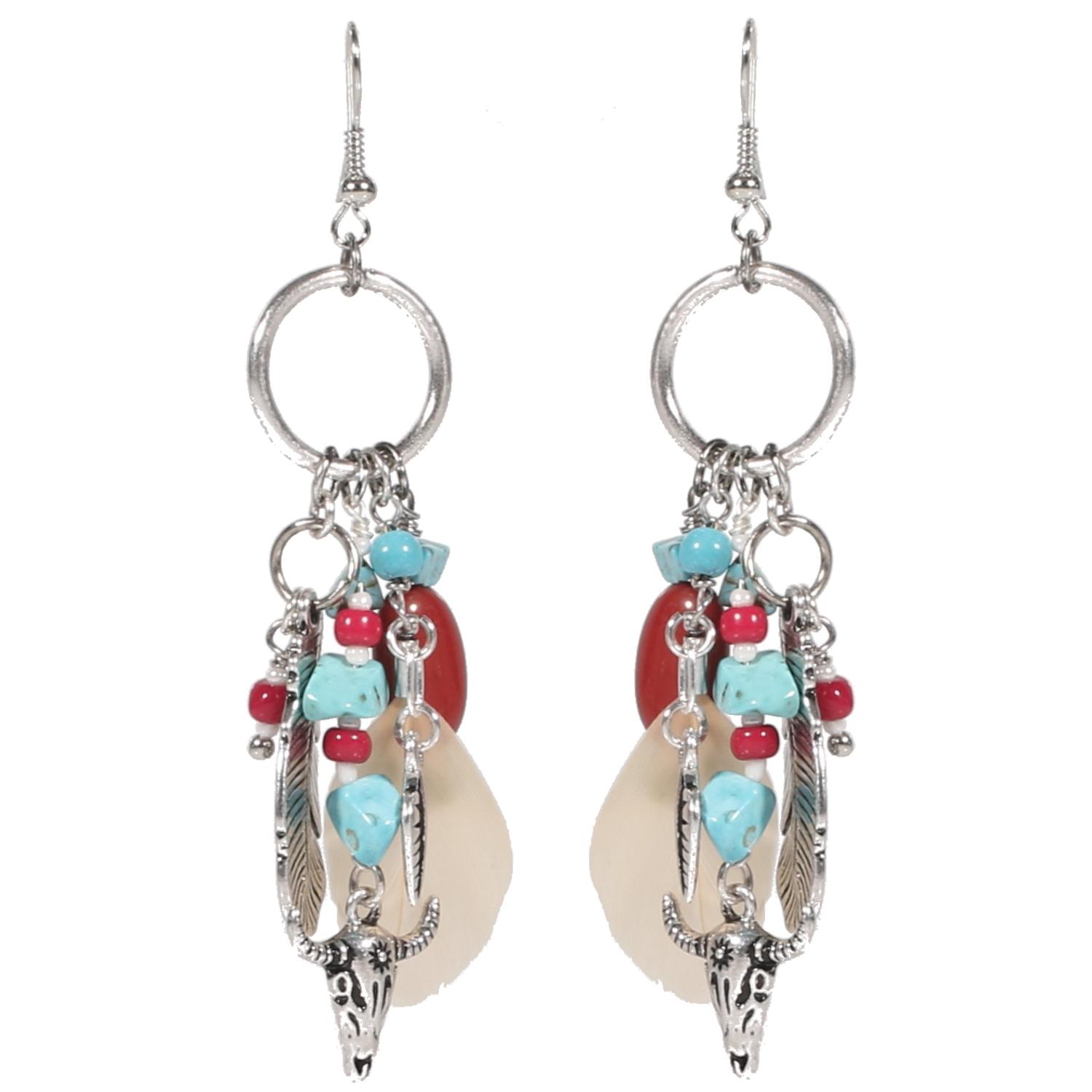 Boucles d'oreilles fantaisie en métal argenté, rocaille et plume.