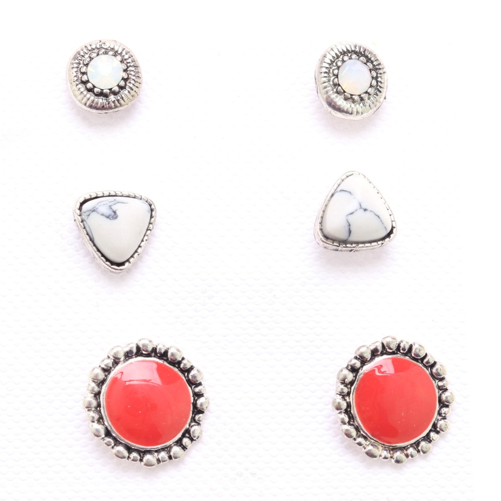 Lot de 3 paires de boucles d'oreilles fantaisie en métal argenté et rocaille.