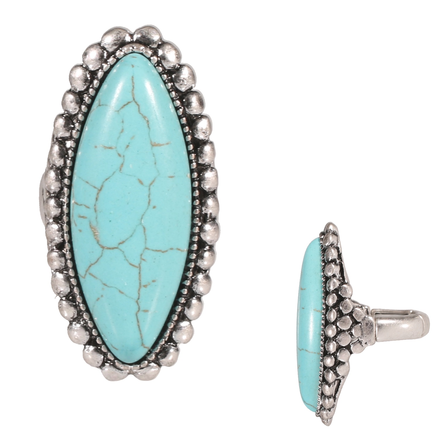 Bague fantaisie en métal argenté vieilli et rocaille.