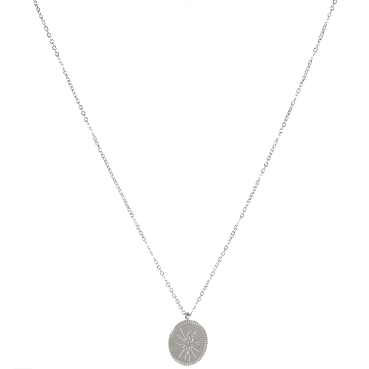 Description Collier avec pendentif ovale motif étoile en acier argenté et un cristal en verre. Cliquez sur une matière, un thème, une couleur ou une collection pour voir tous les articles associés.