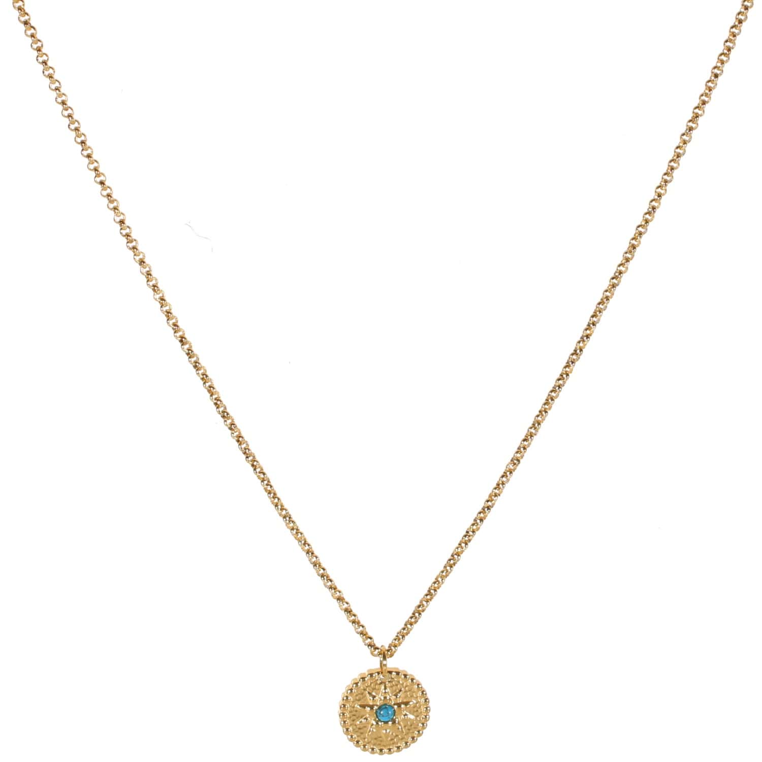 Description Collier avec pastille motif étoile en acier doré et pierre d'imitation turquoise. Cliquez sur une matière, un thème, une couleur ou une collection pour voir tous les articles associés.