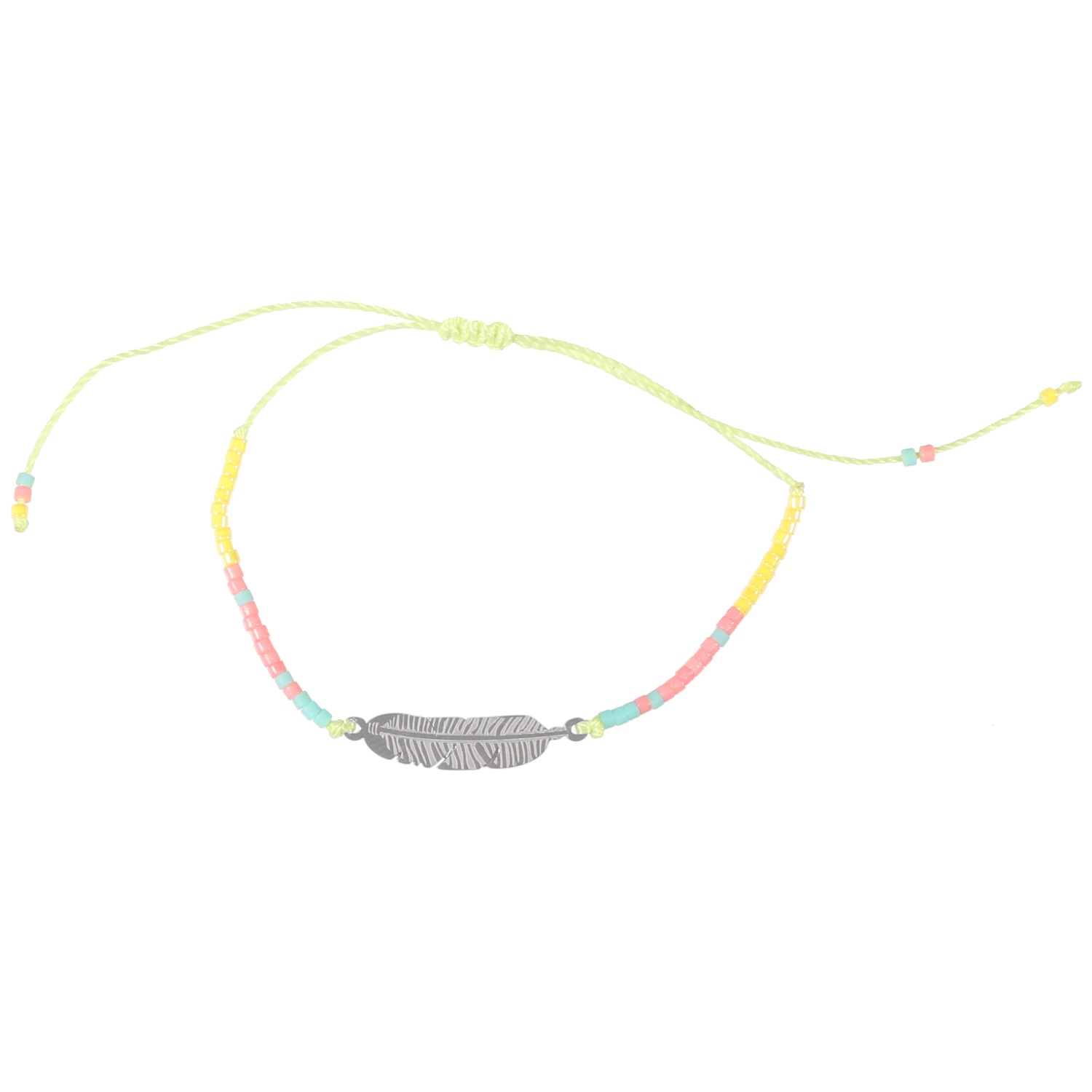 Bracelet Plume en acier, pierres synthétiques et textile.