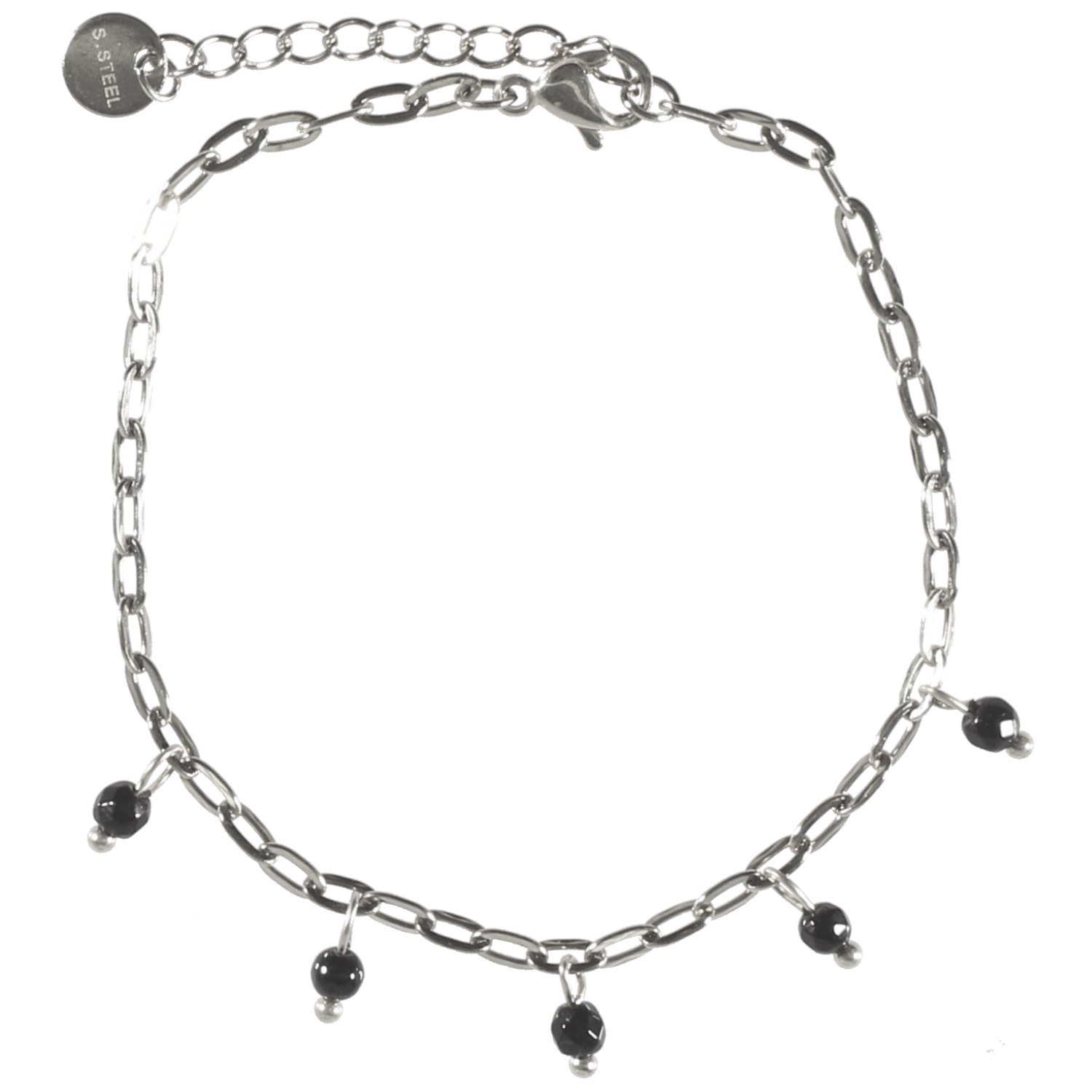 Description Bracelet en acier argenté et perles pendantes de couleur noire. Fermoir mousqueton avec 2.5 cm de rallonge. Longueur 15.5+2.5 cm [Guide des tailles] Largeur 7 mm Matière(s) Acier , Rocaille . L'acier utilisé dans la bijouterie existe sous plusieurs qualités. Nous utilisons principalement la qualité 316L, qualité qui est utilisée en chirurgie. Cet acier est donc inoxydable et reste très résistant. Fermoir Mousqueton Couleur(s) dominante(s) Argenté , Noir Public Adolescent , Adulte . Genre Femme , Fille . Saison Indémodable . Cliquez sur une matière, un thème, une couleur ou une collection pour voir tous les articles associés.
