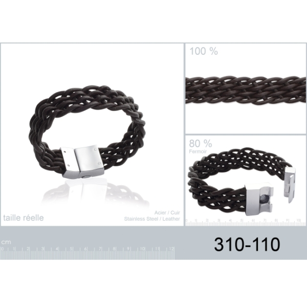 Description Bracelet en acier et cuir. Longueur 19 cm [Guide des tailles] Largeur 22 mm Matière(s) Acier , Cuir . L'acier utilisé dans la bijouterie existe sous plusieurs qualités. Nous utilisons principalement la qualité 316L, qualité qui est utilisée en chirurgie. Cet acier est donc inoxydable et reste très résistant. Fermoir Autre Couleur(s) dominante(s) Noir Public Adulte . Genre Femme . Saison Indémodable . Cliquez sur une matière, un thème, une couleur ou une collection pour voir tous les articles associés.