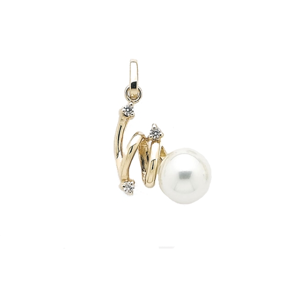 Pendentif en plaqué-or, perle d'imitation et oxyde de zirconium.