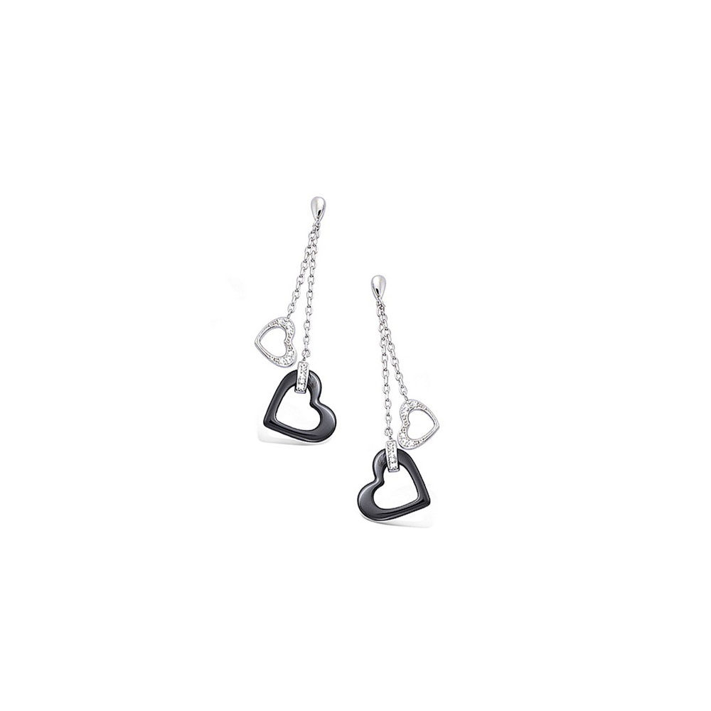 Boucles d'oreilles cœurs en argent 925/000 rhodié, oxyde de zirconium et céramique.