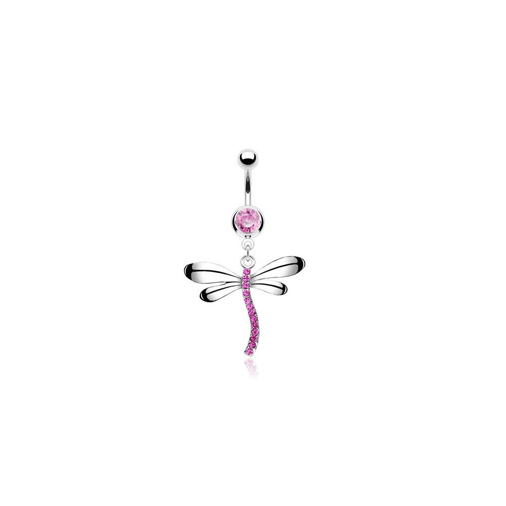 Piercing banane libellule en acier chirurgical 316L et cristal.