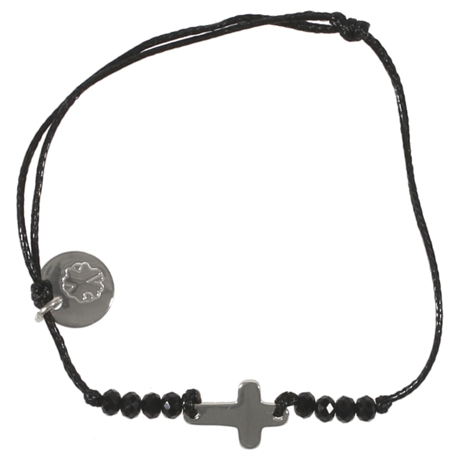 Bracelet en acier argenté, rocaille et coton.