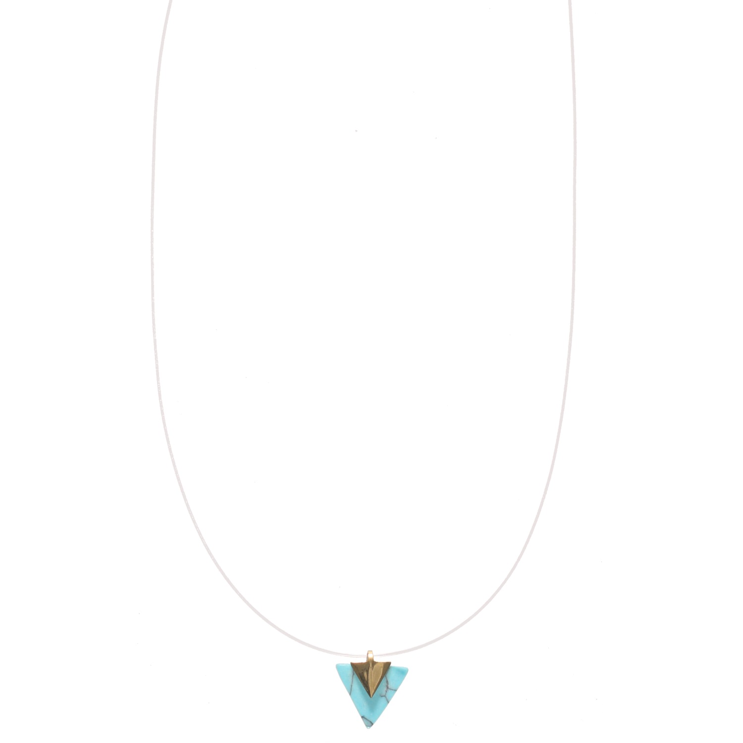 Collier avec pendentif Triangle en acier doré, fil de nylon et pierre d'imitation turquoise.