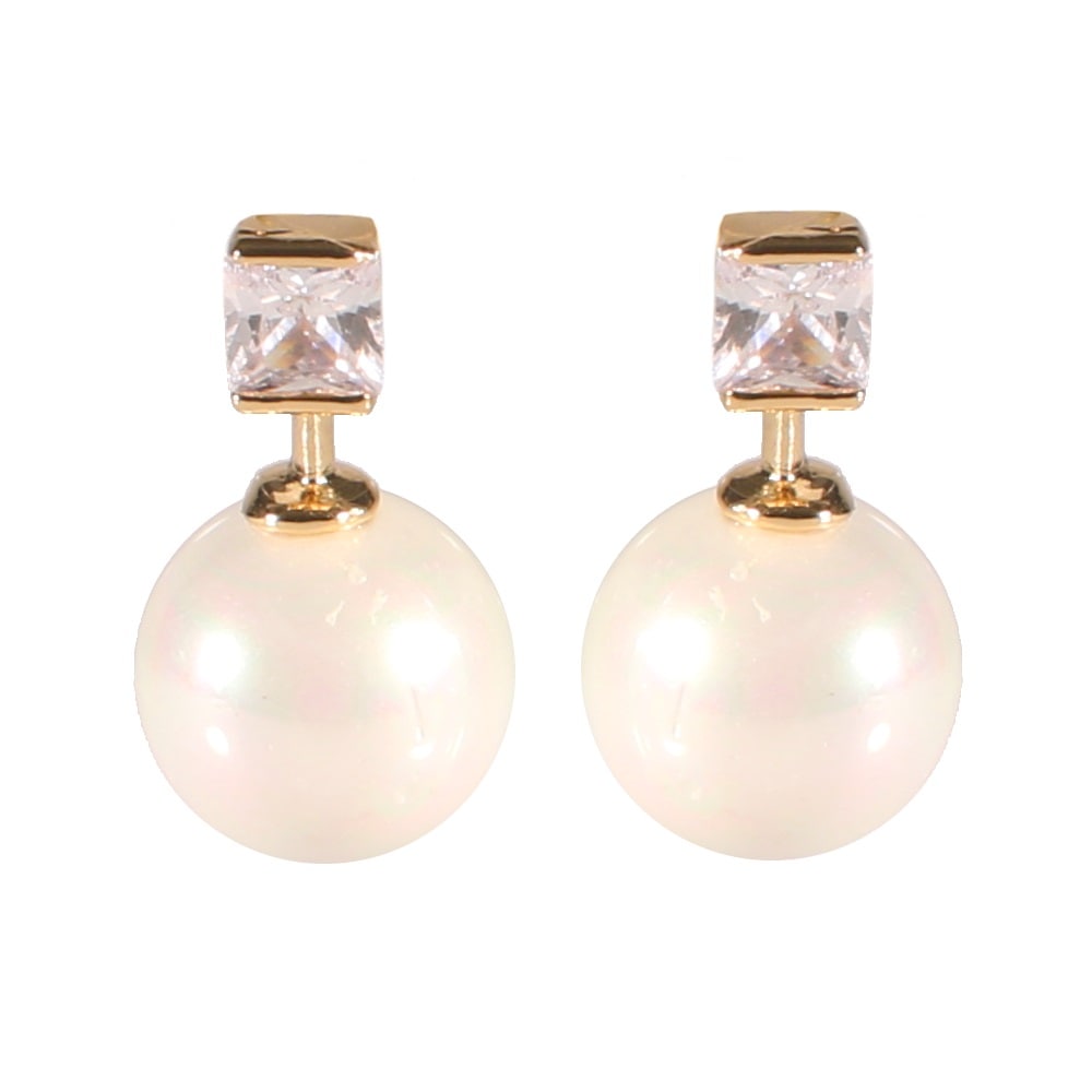 Description Boucles d'oreilles fantaisie pendantes en métal doré, cristaux en oxyde de zirconium et perles synthétiques. Cliquez sur une matière, un thème, une couleur ou une collection pour voir tous les articles associés.