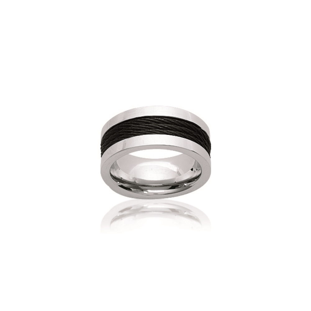Description Bague en acier et acier ruthénié. Largeur 10 mm Matière(s) Acier , Ruthénium . L'acier utilisé dans la bijouterie existe sous plusieurs qualités. Nous utilisons principalement la qualité 316L, qualité qui est utilisée en chirurgie. Cet acier est donc inoxydable et reste très résistant. Couleur(s) dominante(s) Argenté , Multicolore , Noir Public Adulte . Genre Femme , Homme , Mixte . Saison Indémodable . Cliquez sur une matière, un thème, une couleur ou une collection pour voir tous les articles associés.