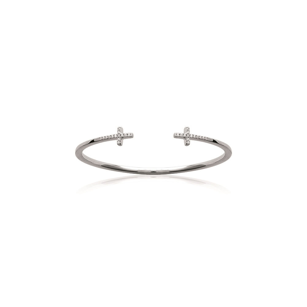 Bracelet jonc rigide en argent 925/000 rhodié et oxyde de zirconium.