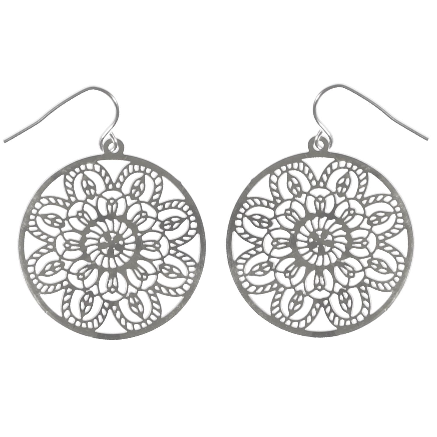 Boucles d'oreilles fantaisie en métal argenté. Pendantes Rond  Adolescent Adulte Femme Fille Indémodable