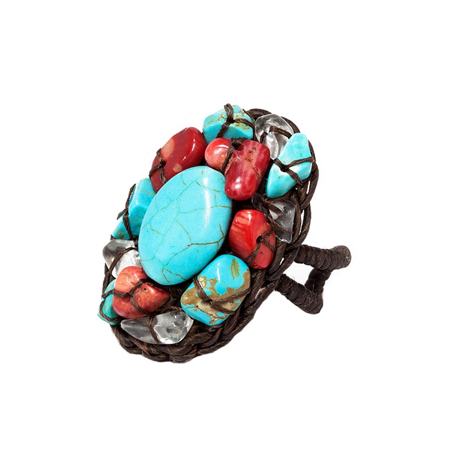 Bague fantaisie en textile, rocaille et résine.