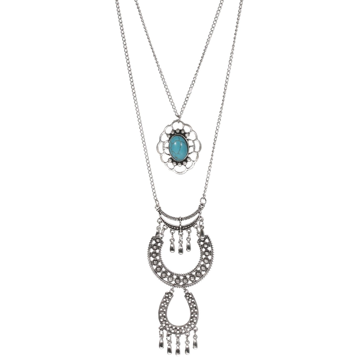 Collier sautoir fantaisie en métal argenté vieilli et rocaille.