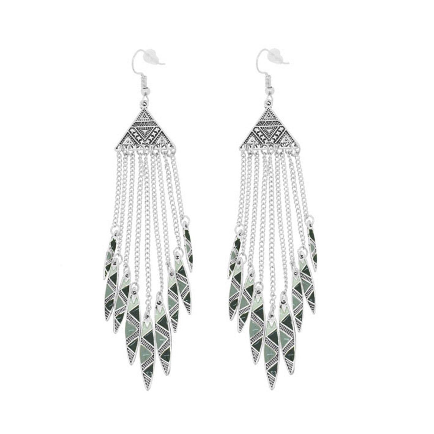 Boucles d'oreilles fantaisie en métal argenté vieilli et métal peint.