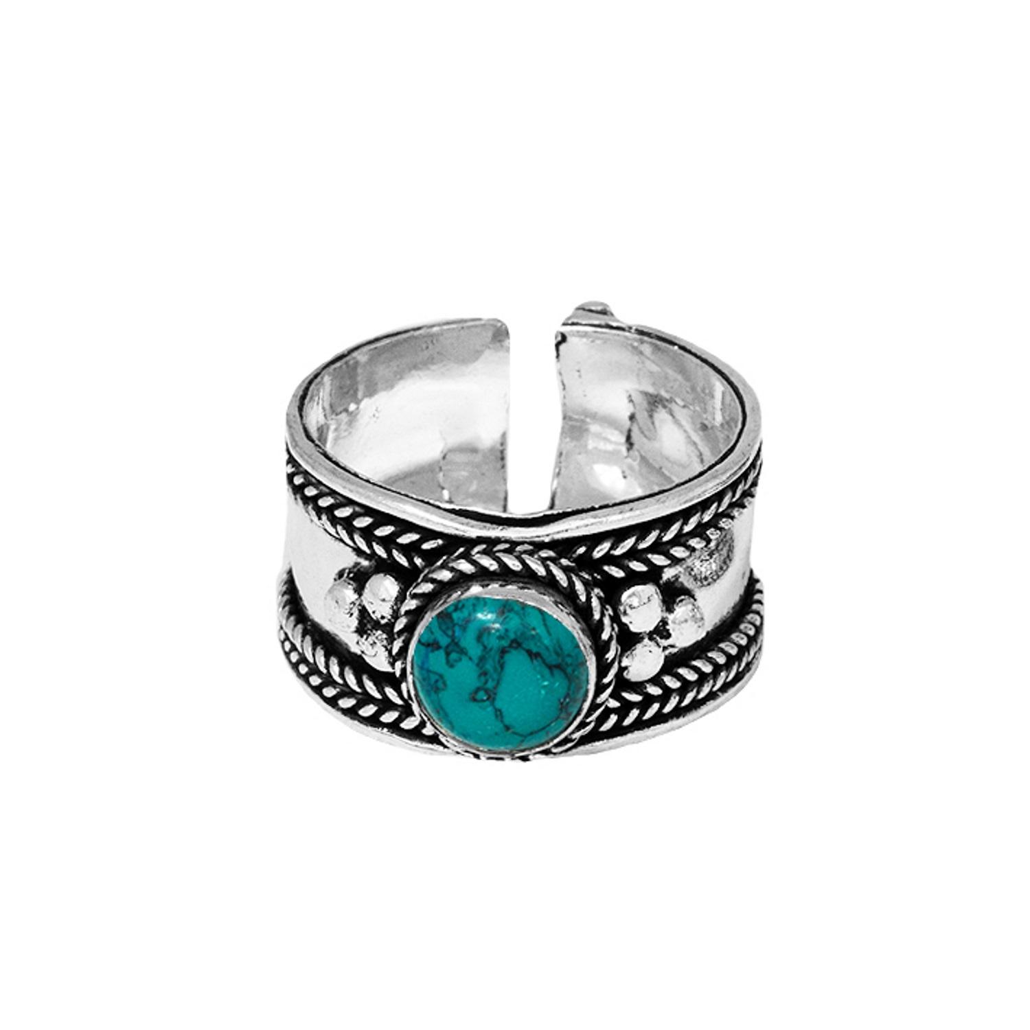 Bague fantaisie en métal argenté vieilli et rocaille.