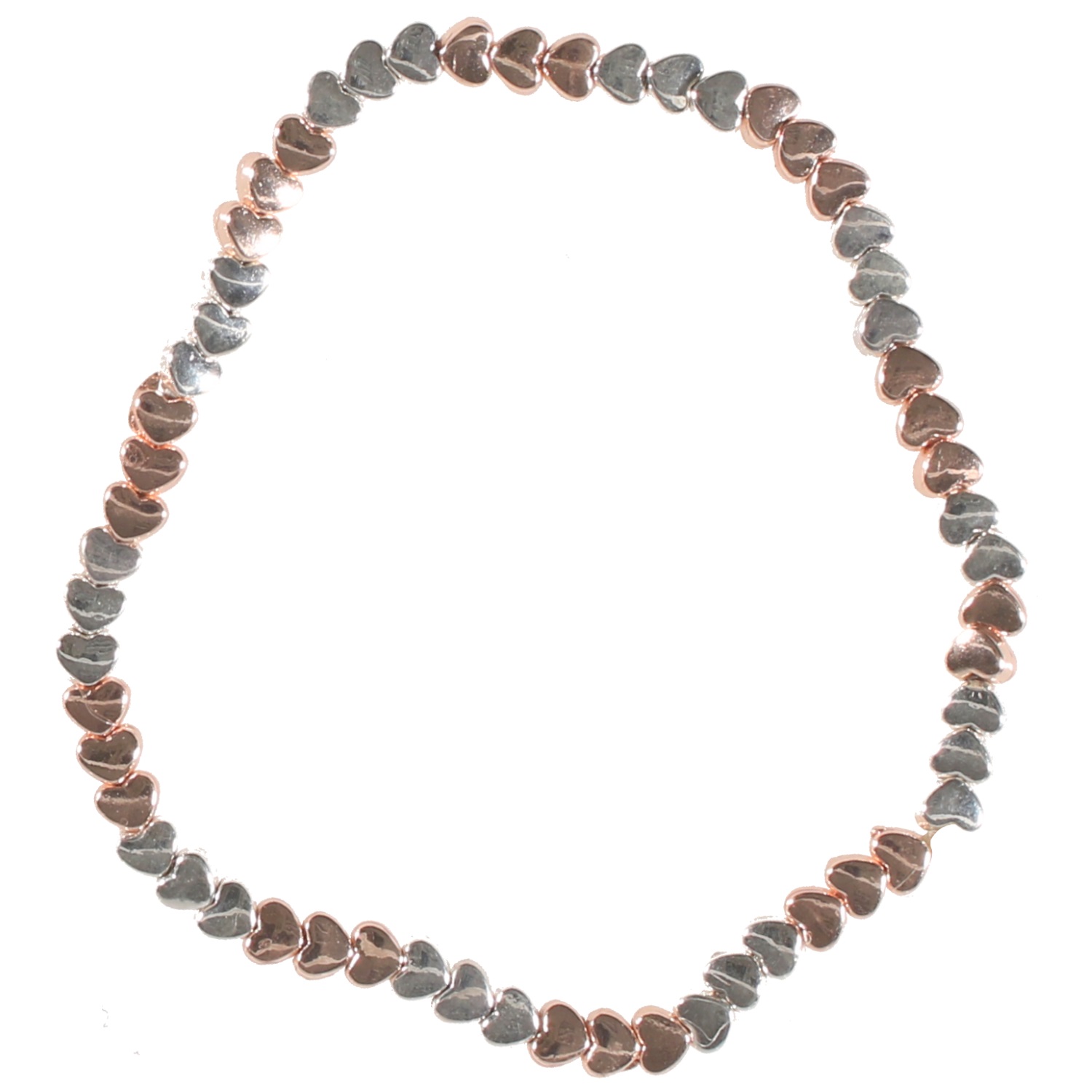 Bracelet fantaisie élastique Cœurs en métal argenté et métal rosé.