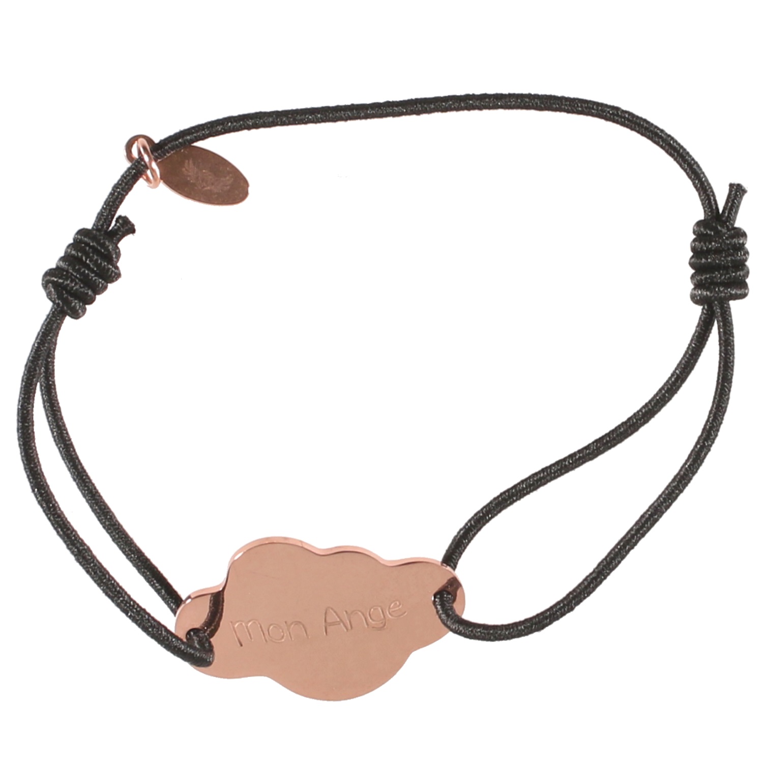 Bracelet élastique avec le message mon ange gravé sur un nuage en acier rosé et cordon en coton.