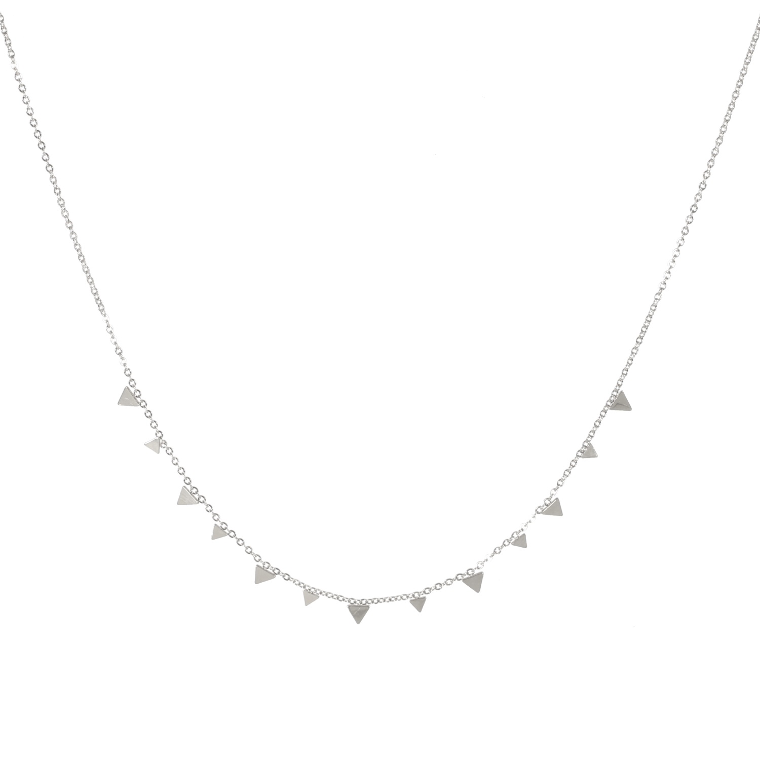 Description Collier avec pampilles triangulaires en acier argenté. Fermoir mousqueton avec 5 cm de rallonge. Cliquez sur une matière, un thème, une couleur ou une collection pour voir tous les articles associés.