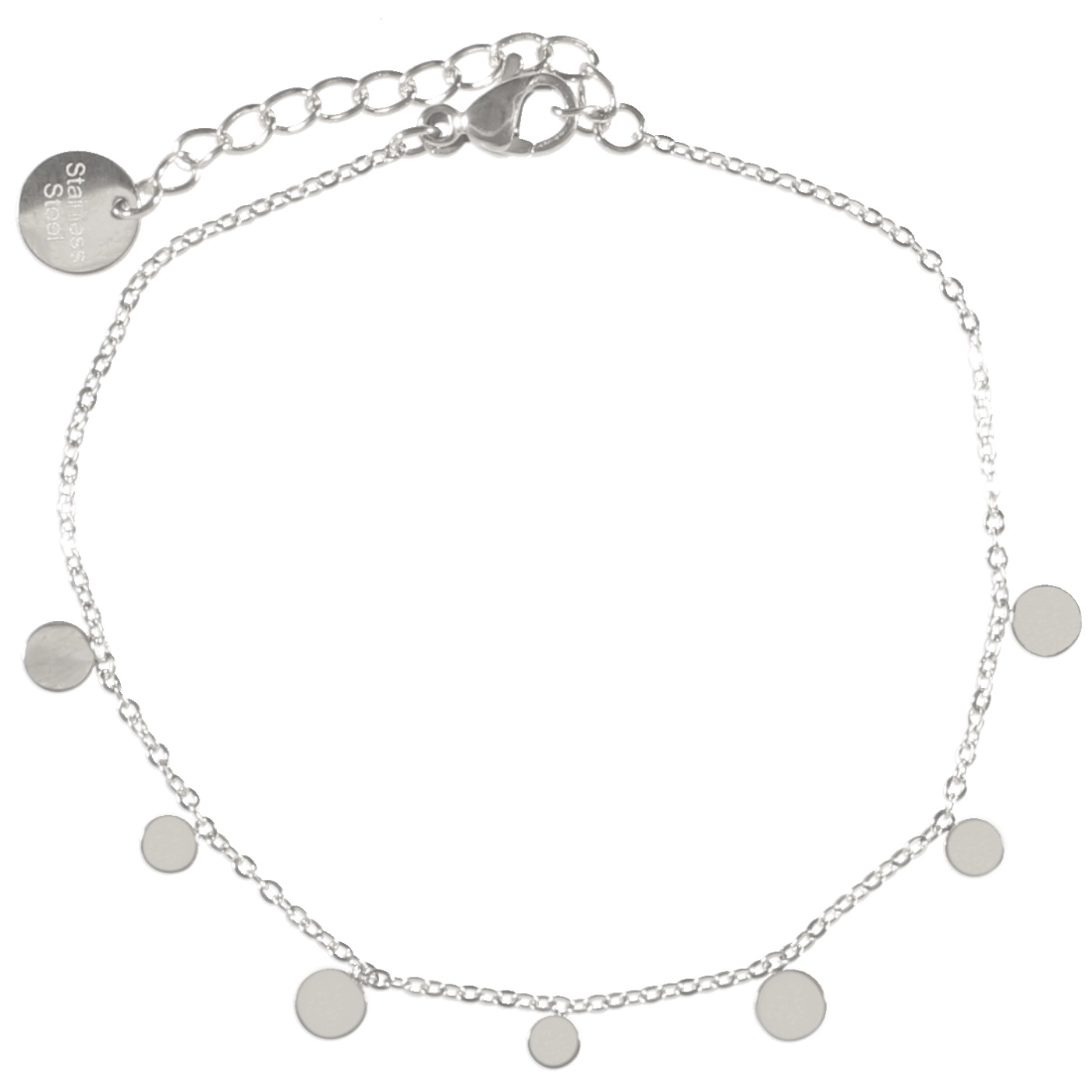 Description Bracelet avec pampilles rondes en acier argenté. Fermoir mousqueton avec 3 cm de rallonge. Cliquez sur une matière, un thème, une couleur ou une collection pour voir tous les articles associés.