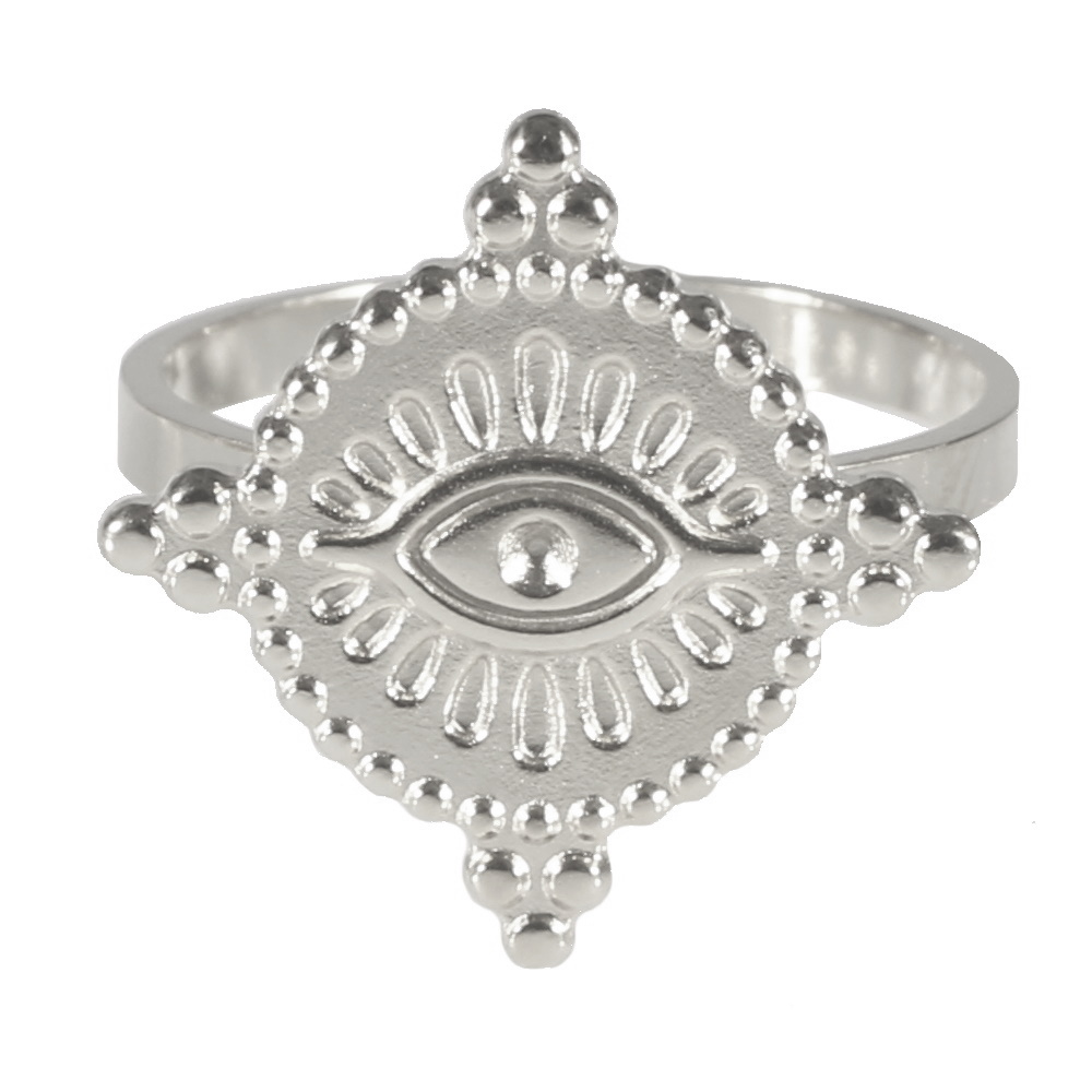 Description Bague surmontée d'une pastille ronde avec le motif d'œil de Turquie en relief en acier argenté. Taille ajustable. Largeur 18 mm Matière(s) Acier . L'acier utilisé dans la bijouterie existe sous plusieurs qualités. Nous utilisons principalement la qualité 316L, qualité qui est utilisée en chirurgie. Cet acier est donc inoxydable et reste très résistant. Fermoir Aucun Couleur(s) dominante(s) Argenté Public Adolescent , Adulte . Genre Femme , Fille . Saison Indémodable . Thème(s) Symboles . Cliquez sur une matière, un thème, une couleur ou une collection pour voir tous les articles associés.