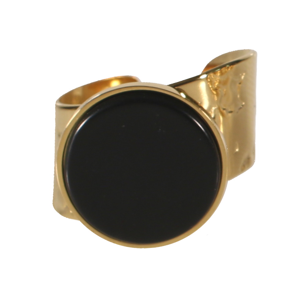 Description Bague à l'anneau large et difforme avec motif en acier doré surmontée d'une pierre sertie clos de couleur noire de forme ronde. Taille ajustable. Largeur 19 mm Matière(s) Acier , Rocaille . L'acier utilisé dans la bijouterie existe sous plusieurs qualités. Nous utilisons principalement la qualité 316L, qualité qui est utilisée en chirurgie. Cet acier est donc inoxydable et reste très résistant. Fermoir Aucun Couleur(s) dominante(s) Doré , Noir Public Adolescent , Adulte . Genre Femme , Fille . Saison Indémodable . Cliquez sur une matière, un thème, une couleur ou une collection pour voir tous les articles associés.