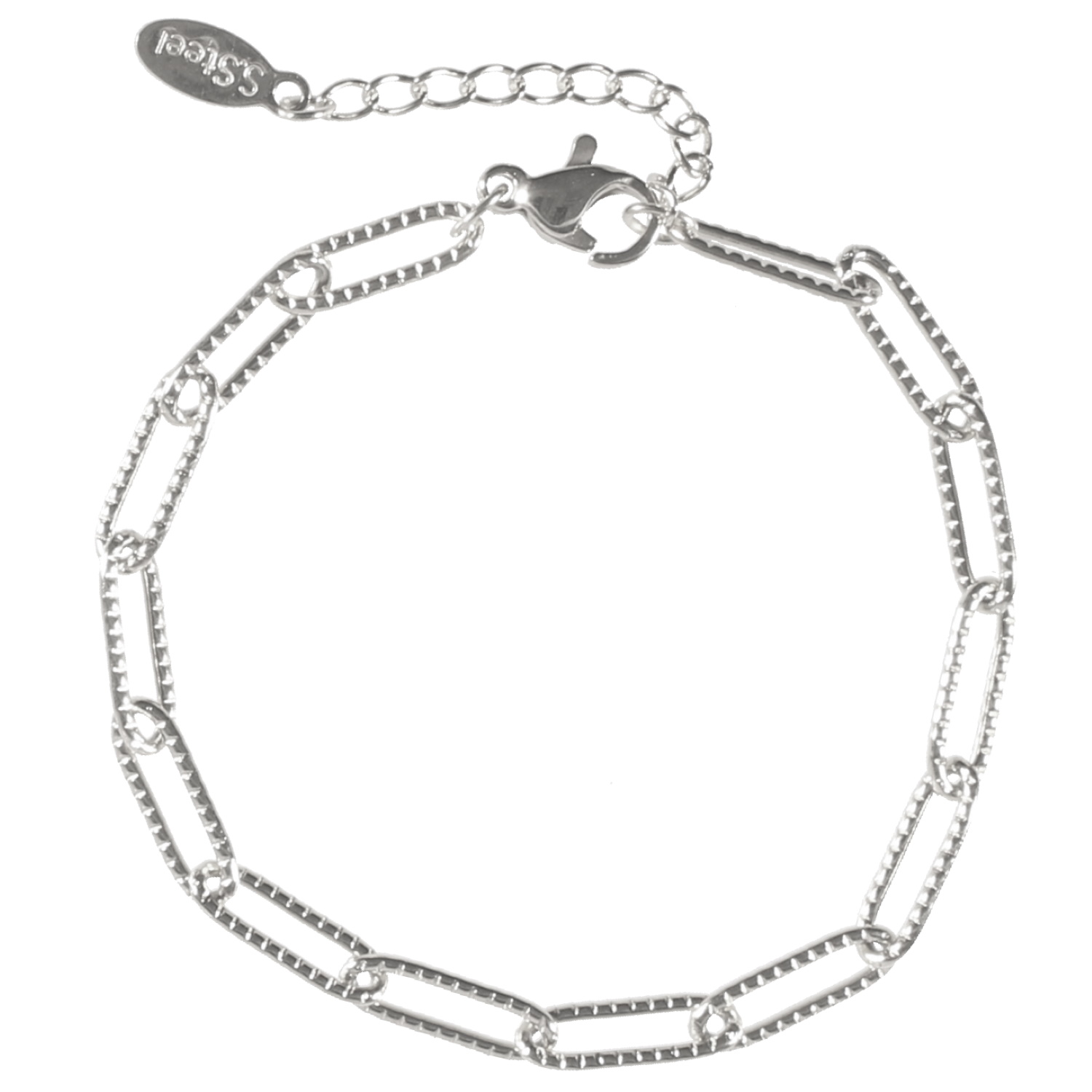 Description Bracelet en acier argenté. Fermoir mousqueton avec 3 cm de rallonge. Cliquez sur une matière, un thème, une couleur ou une collection pour voir tous les articles associés.