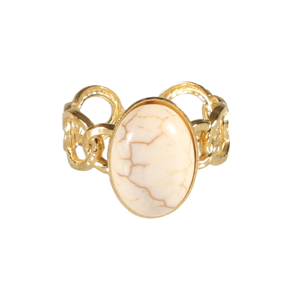 Description Bague en forme de chaîne en acier doré surmontée d'une pierre de couleur blanche sertie clos de forme ovale. Taille ajustable. Largeur 15 mm Matière(s) Acier , Rocaille . L'acier utilisé dans la bijouterie existe sous plusieurs qualités. Nous utilisons principalement la qualité 316L, qualité qui est utilisée en chirurgie. Cet acier est donc inoxydable et reste très résistant. Fermoir Aucun Couleur(s) dominante(s) Blanc , Doré Public Adolescent , Adulte . Genre Femme , Fille . Saison Indémodable . Collection Christine Cliquez sur une matière, un thème, une couleur ou une collection pour voir tous les articles associés.