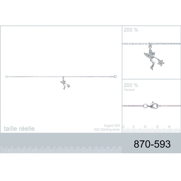 Bracelet en argent 925/000 rhodié et oxyde de zirconium. Breloques Etoile Fée  Adulte Femme Indémodable Nature Personnage Symboles