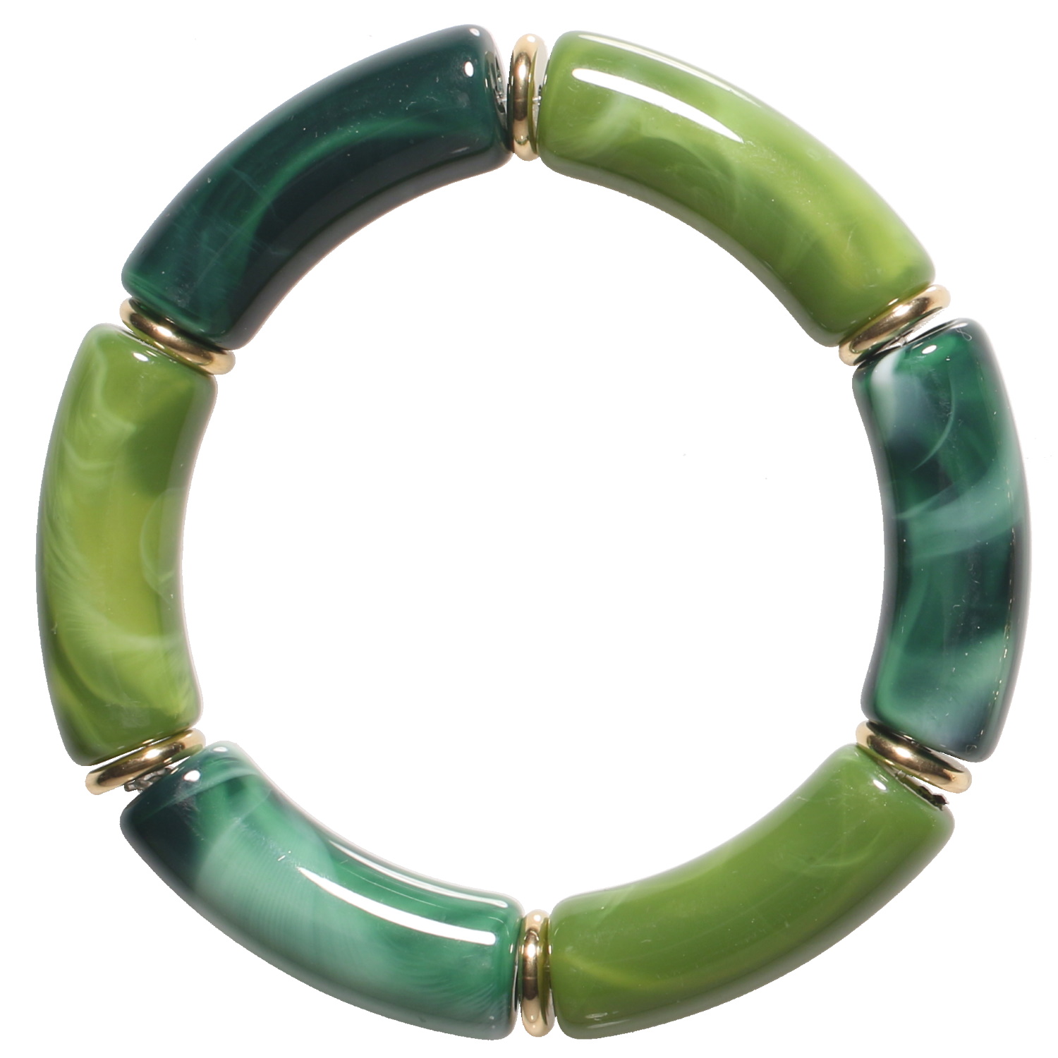 Description Bracelet élastique composé de perles cylindriques en acier doré et de tubes de couleur vert. Cliquez sur une matière, un thème, une couleur ou une collection pour voir tous les articles associés.