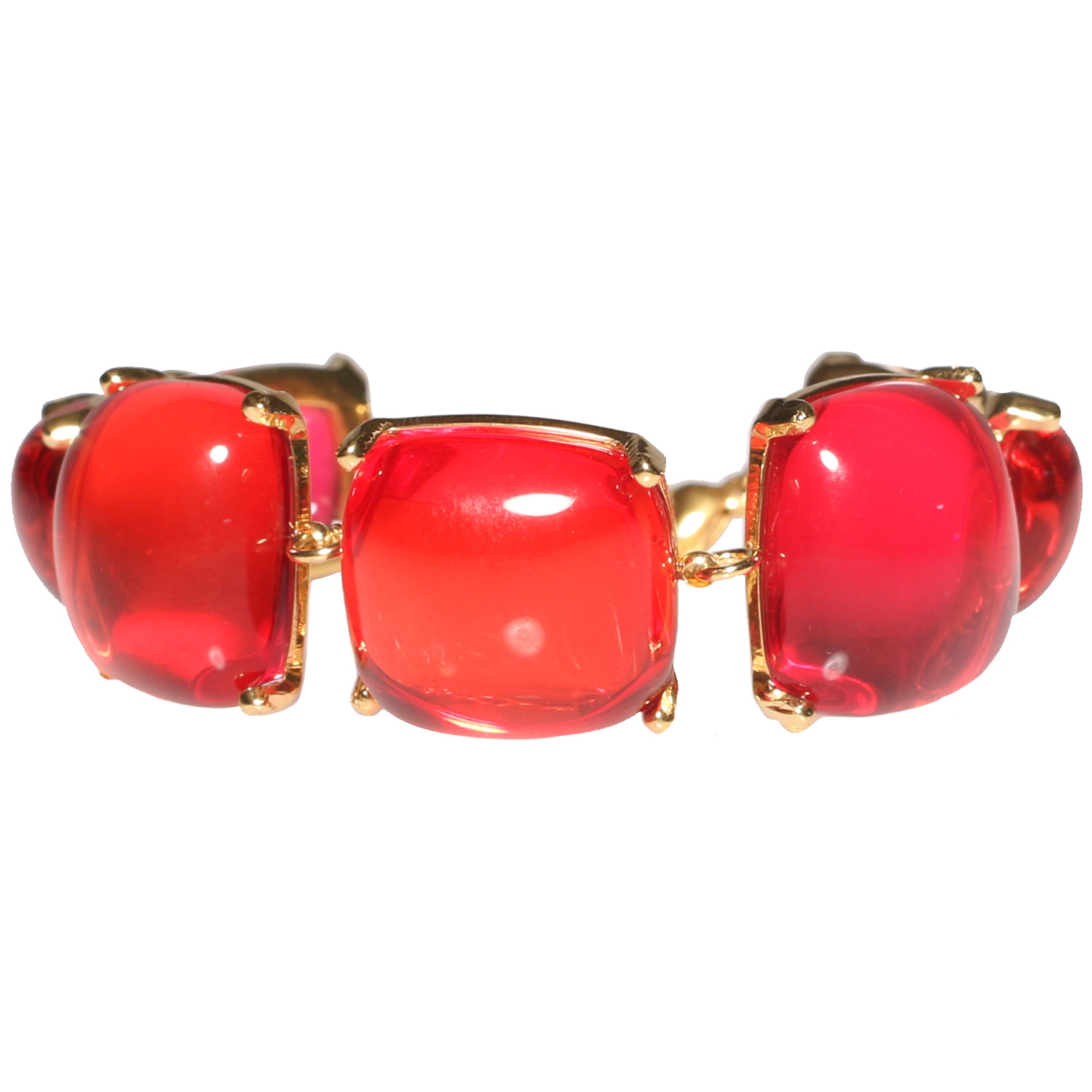 Description Bracelet en acier doré serti griffes de pierres de couleur rose et rouge. Fermoir mousqueton avec 3 cm de rallonge. Cliquez sur une matière, un thème, une couleur ou une collection pour voir tous les articles associés.