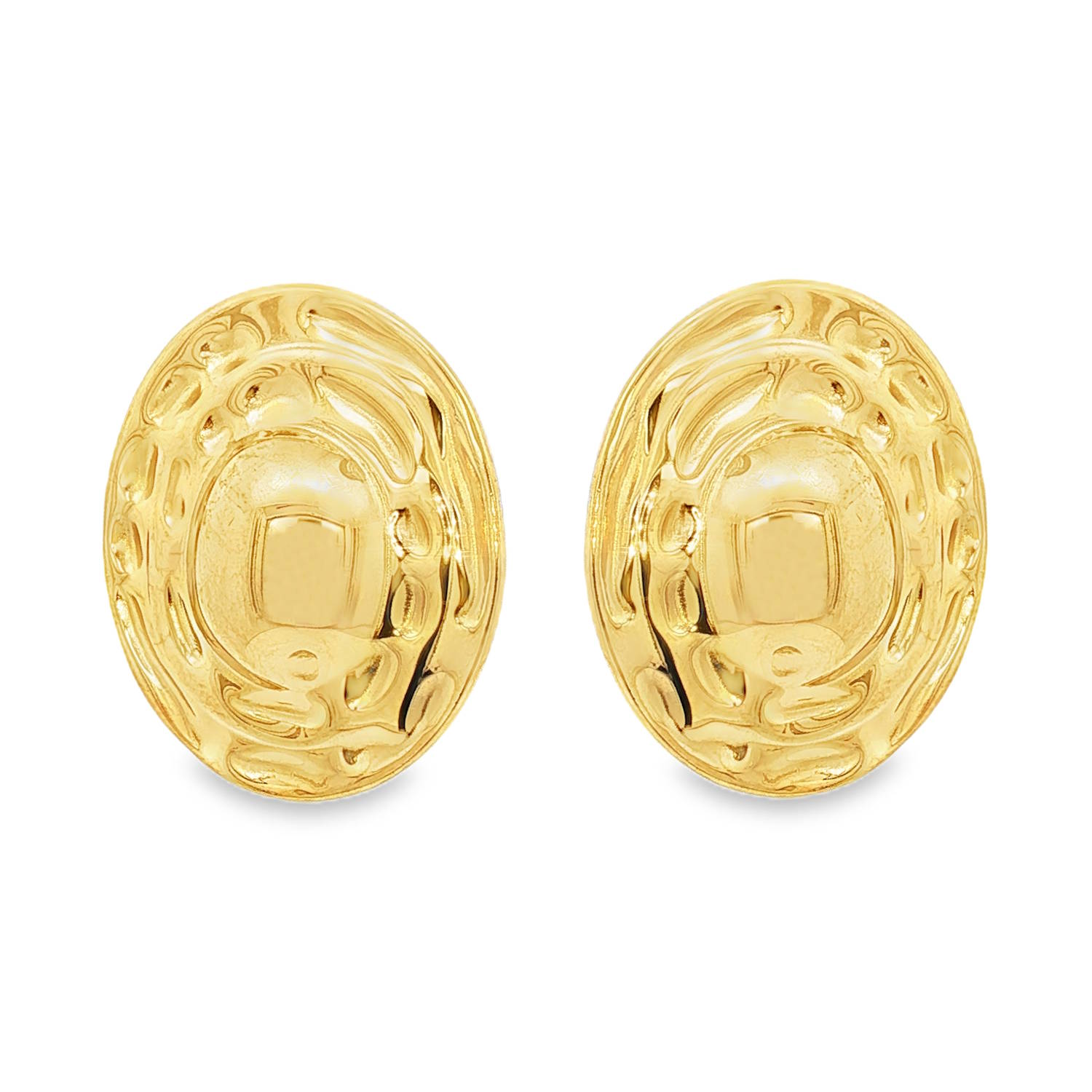 Description Ces boucles d'oreilles pendantes en acier doré présentent une surface texturée unique, offrant un aspect riche et captivant. Son design sans pierre met en valeur la chaleur et l'éclat du doré, faisant de ce bijou un ajout polyvalent et élégant à toute collection. Parfait pour un style minimaliste et raffiné. Largeur 24 mm Hauteur 28 mm Matière(s) Acier . L'acier utilisé dans la bijouterie existe sous plusieurs qualités. Nous utilisons principalement la qualité 316L, qualité qui est utilisée en chirurgie. Cet acier est donc inoxydable et reste très résistant. Fermoir Clip Couleur(s) dominante(s) Doré Public Adolescent , Adulte . Genre Femme , Fille . Saison Indémodable . Cliquez sur une matière, un thème, une couleur ou une collection pour voir tous les articles associés.