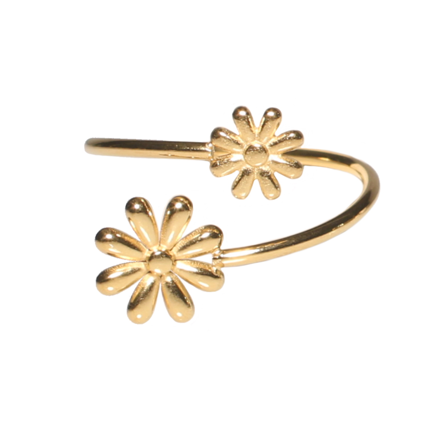Description Bague avec deux fleurs en acier doré. Taille ajustable. Largeur 15 mm Matière(s) Acier . L'acier utilisé dans la bijouterie existe sous plusieurs qualités. Nous utilisons principalement la qualité 316L, qualité qui est utilisée en chirurgie. Cet acier est donc inoxydable et reste très résistant. Couleur(s) dominante(s) Doré Public Adolescent , Adulte . Genre Femme , Fille . Saison Indémodable . Thème(s) Fleurs , Nature . Cliquez sur une matière, un thème, une couleur ou une collection pour voir tous les articles associés.