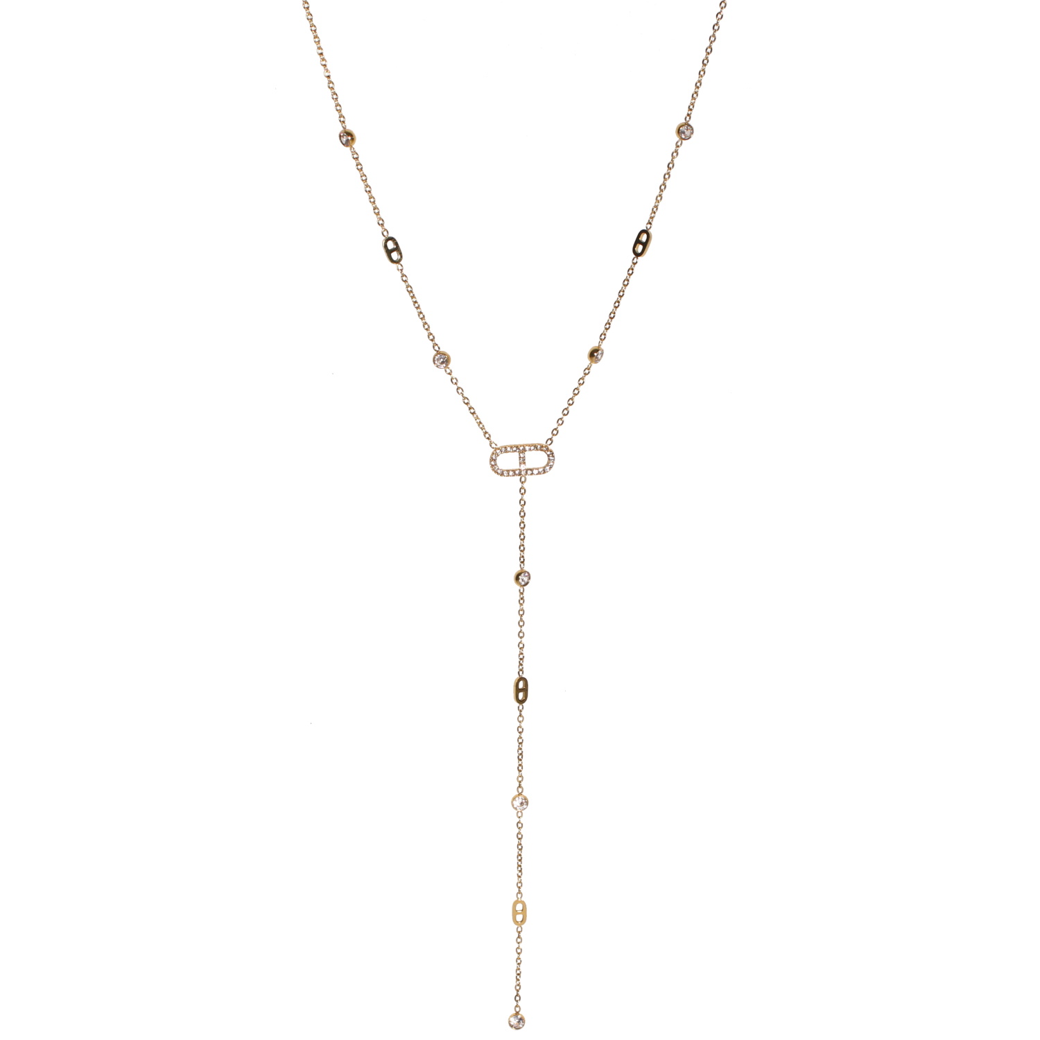 Description Collier de forme Y composé d'une chaîne avec symboles ovales barrés en acier doré, des cristaux serties clos et d'un symbole ovale barré pavé de strass. Fermoir mousqueton avec 5 cm de rallonge. Longueur 38+5 cm [Guide des tailles] Hauteur 13 cm Matière(s) Acier , Verre . L'acier utilisé dans la bijouterie existe sous plusieurs qualités. Nous utilisons principalement la qualité 316L, qualité qui est utilisée en chirurgie. Cet acier est donc inoxydable et reste très résistant. Fermoir Mousqueton Couleur(s) dominante(s) Doré Public Adolescent , Adulte . Genre Femme , Fille . Saison Indémodable . Cliquez sur une matière, un thème, une couleur ou une collection pour voir tous les articles associés.
