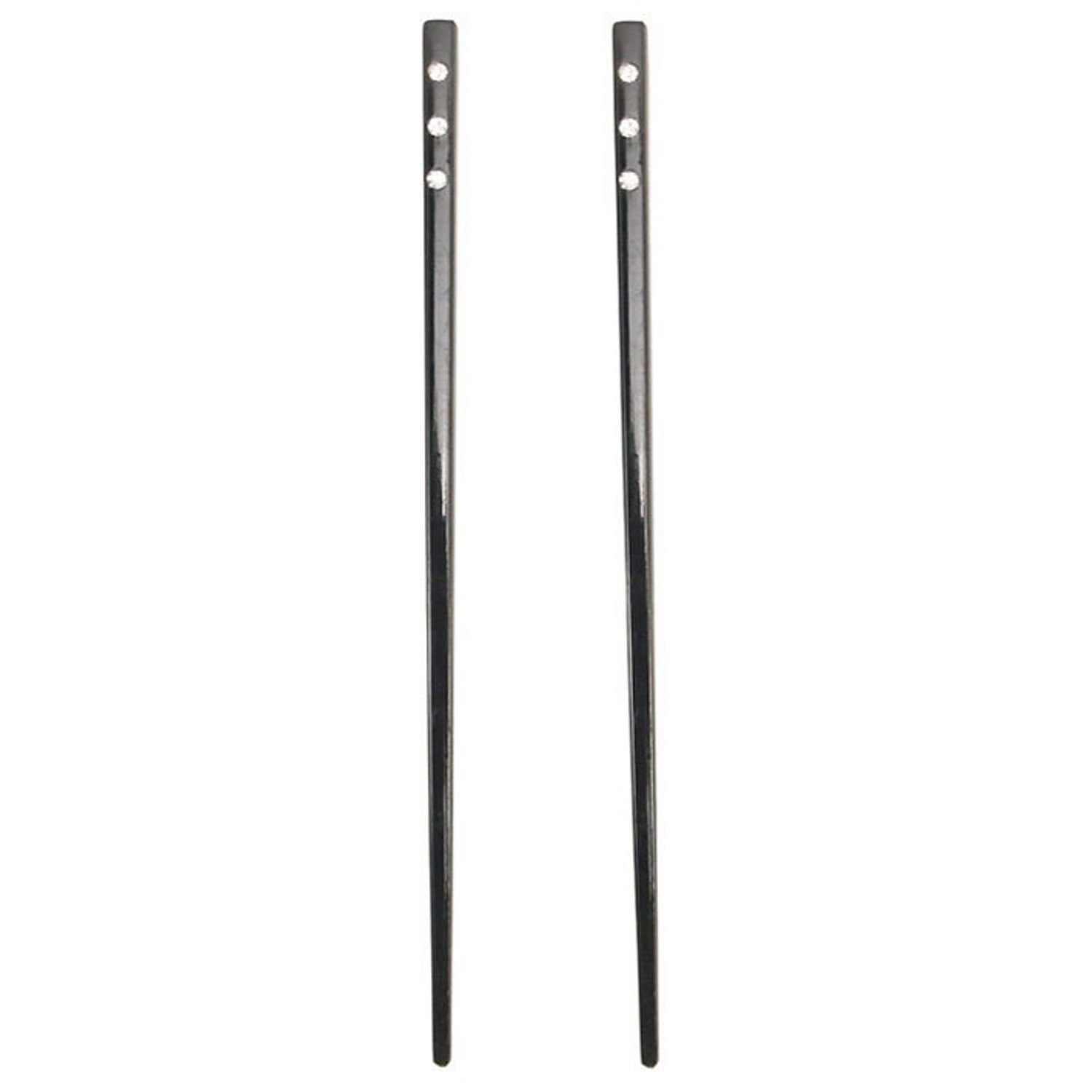 Lot de 2 pics cheveux en plastique noir brillant et strass.