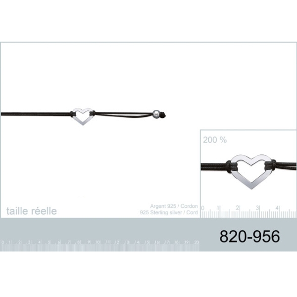 Bracelet en argent 925/000 et cordon noir. Coeur Cordon Multirangs  Adulte Amour Femme Indémodable